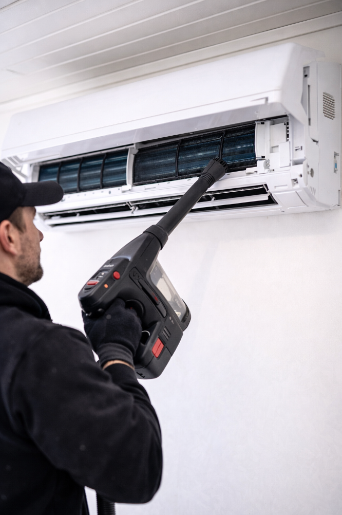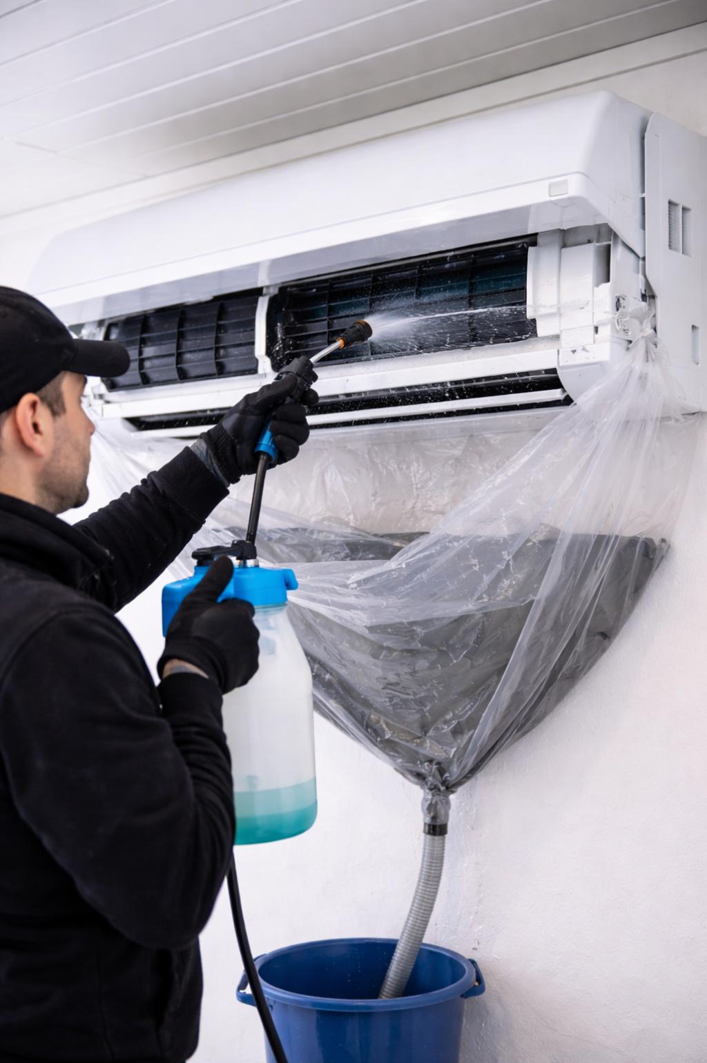 Huollamme ilmalämpöpumpun kokonaisuutena. Tarkastamme sisä,- ja ulkoyksiköt. Pesemme ja desifioimme sisäyksikön kennon ja puhallinrullan. Poistamme laitteen sisältä pölyt ja mahdolliset homekasvustot.